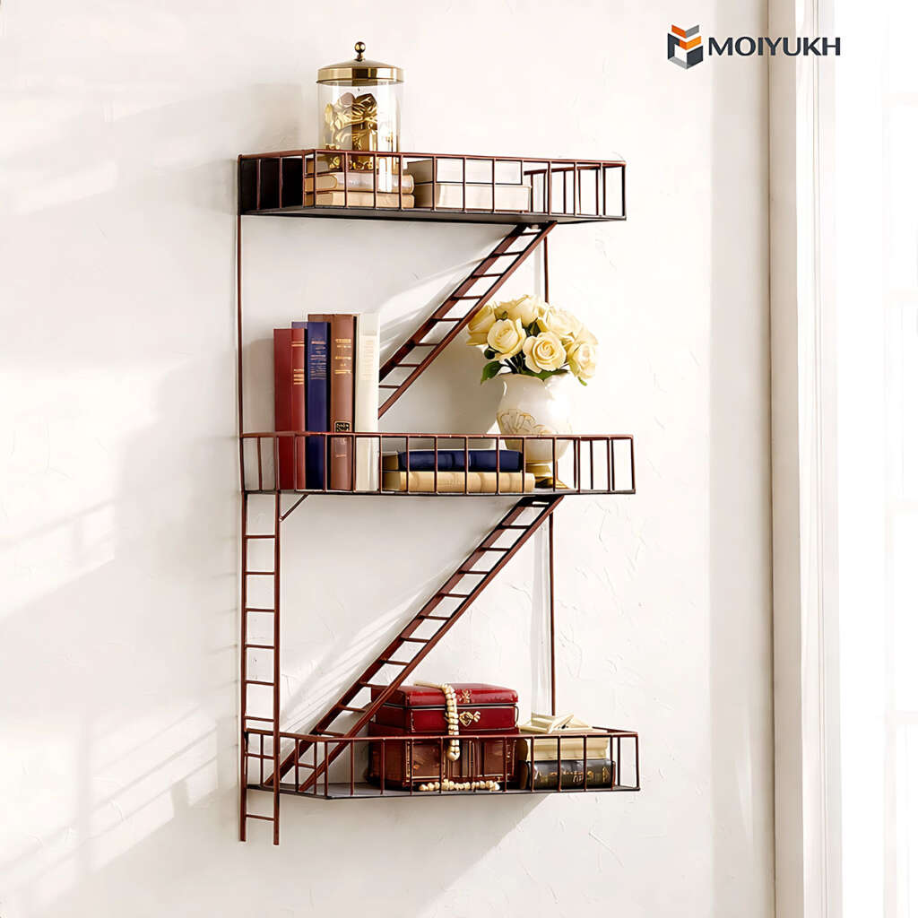 Small wall hanging book shelf is made up of high quality metal. This unique design shelf colored with heat print that prevent rust for a long time.